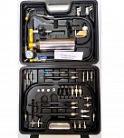 Стенд для промывки форсунок. Комплект предназначен для очистки топливной системы инжекторов без демонтажа форсунок. Данный набор также очищает и детали цилиндро-поршневой группы, из-за того, что принцип работы данного устройства основан на подаче чистящего вещества в цилиндры двигателя вместо обычного топлива. Для очистки используют специальную промывочную жидкость типа Лавр или Wynns.