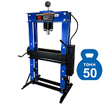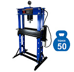 Пресс пневмогидравлический 50 тонн, для автосервиса. Ход поршня 0-230 мм. Рабочее окно 650х815 мм. Управление ручное/пневматическое, манометр, ручная лебедка. Рекомендуется для выпрессовки подшипников, деталей машин, втулок и т.п. в автосервисе, Гараже и СТО. Цвет синий. Доставка по РФ и ТС. Подъёмная площадка регулируется по высоте и фиксируется в требуемом положении.
