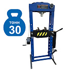 Усилие 30 тонн. Управление ручное/ножное. Полностью сварная рама. Гидроцилиндр с пуансоном перемещается по всей ширине каретки, клапан защиты от перегрузки, манометр, ручная лебедка. Ход поршня 150 мм. Рабочее окно 540х1270 мм. Рекомендуется для выпрессовки подшипников, деталей машин, втулок и т.п. в автосервисе, Гараже и СТО. Доставка РФ, РБ, Армения, Казахстан, Киргизия.