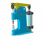 Вертикальный. Гидравлический, напольный. Материал клёпки – сталь, медь, алюминий - 6, 8, 10мм в том числе удлиненные. Усилие до 5т. Клепальный станок управляется нажатием на педали.