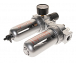 Для подключения одного или нескольких потребителей – 1500л/мин. Снижает давление между компрессором и пневмоинструментом. Регулятор давления воздуха с лубрикатором, влагоотделителем и манометром 3/8”. Давление компрессора 0-10Бар.