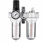 Регулятор давления воздуха с лубрикатором, влагоотделителем и манометром 1/4”. Пропускная способность – 1500л/мин. Давление компрессора 0-10Бар. Снижает давление между компрессором и пневмоинструментом.