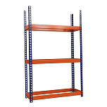 Безболтовое крепление на зацепах, в качестве полок используется фанерный настил. Для оборудования складов, хранилищ и других помещений. Полки: оцинк. мет. 3 шт. Грузоподъемность каждой полки стеллажа - 300-450 кг. Нагрузка на секцию - до 2500 кг. Размеры: 2000x1240x770 мм. Вес: 50 кг.