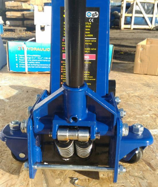 Увеличенный диаметр металлических колес домкрата --86мм, позволяет легко транспортировать его по не ровным поверхностям.