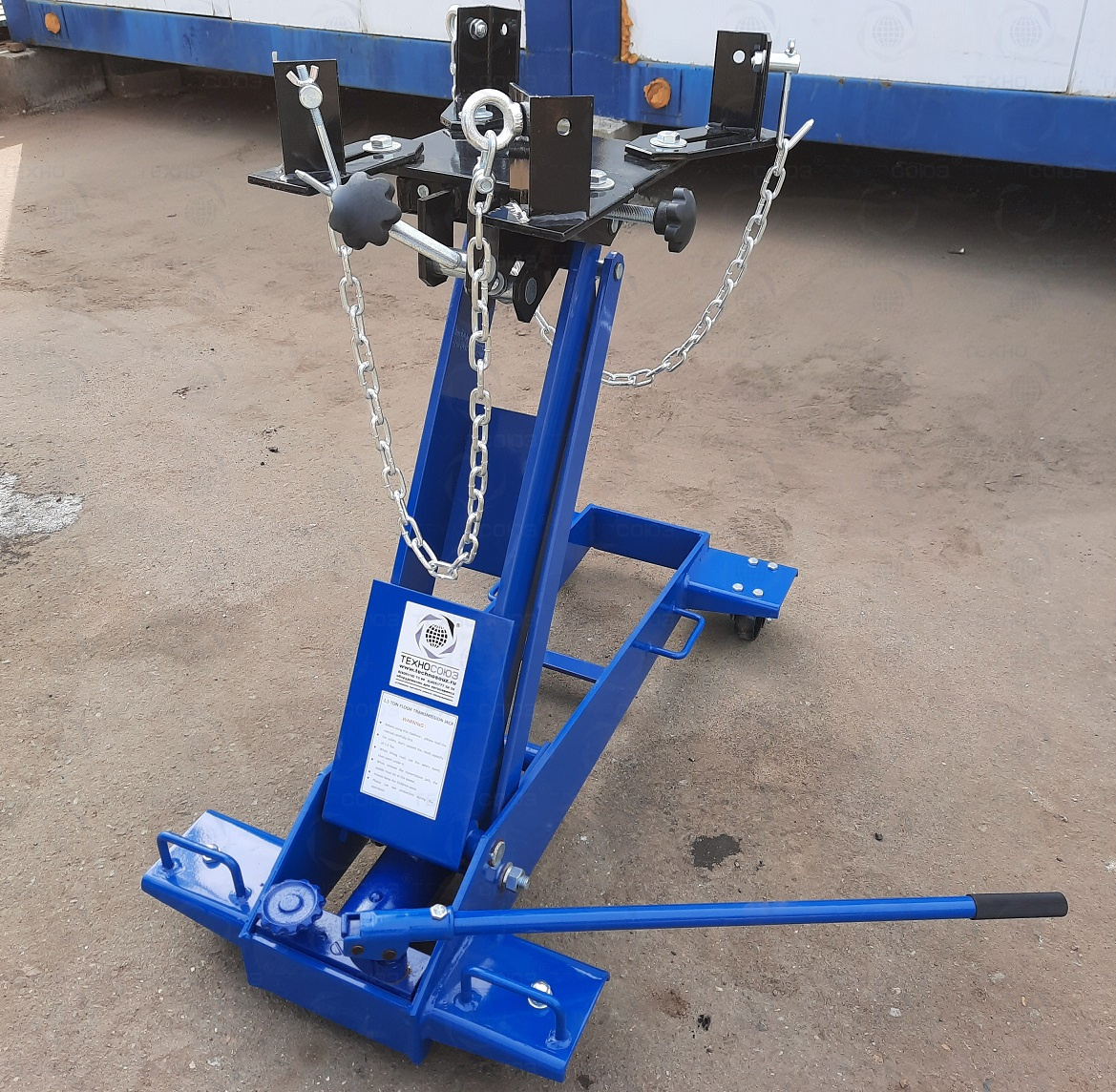 Трансмиссионная гидравлическая стойка домкрат - является мобильным подъёмным устройством. С ее помощью можно поднять и переместить снятый узел. При подъеме на требуемую высоту удобно монтировать снятый агрегат. Цвет темно-синий.