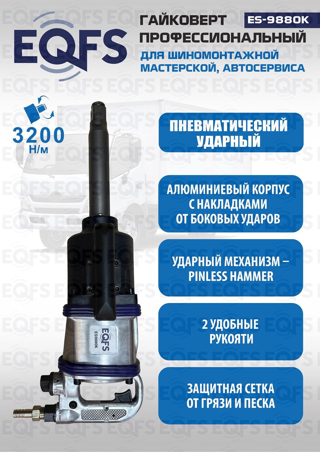 Технические особенности ES9880K Грузовой гайковерт + набор головок: