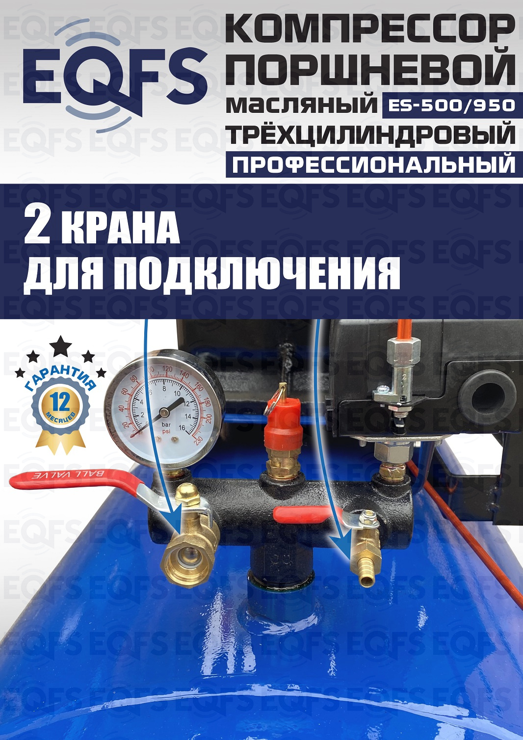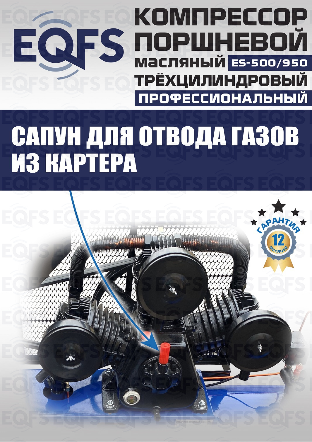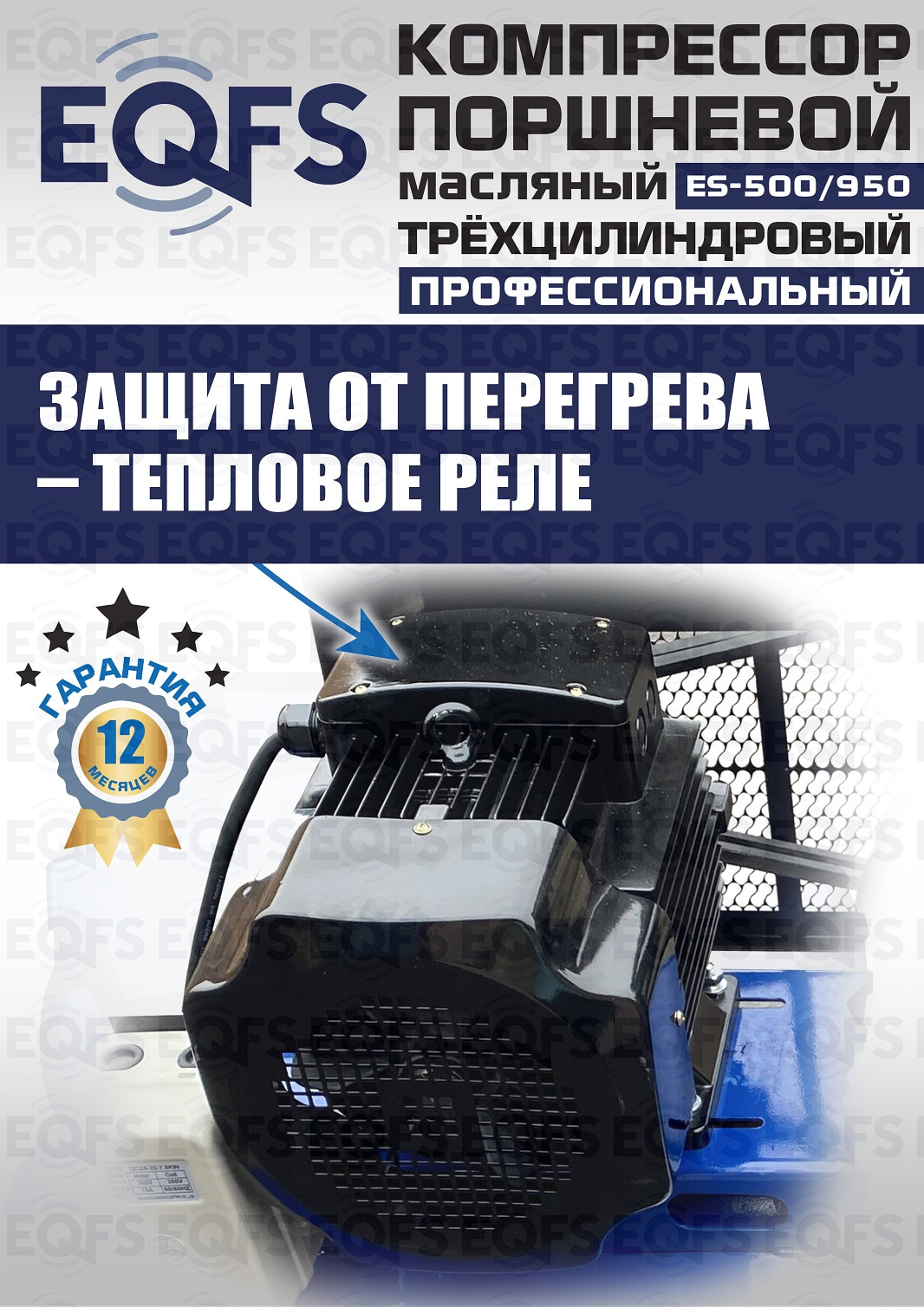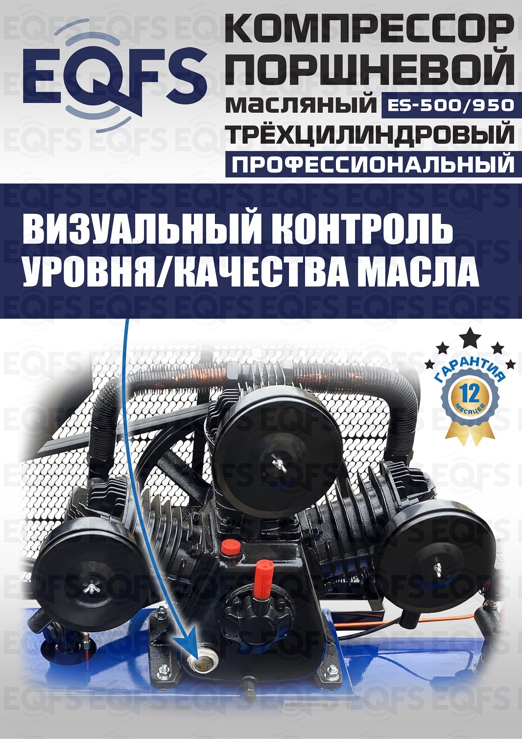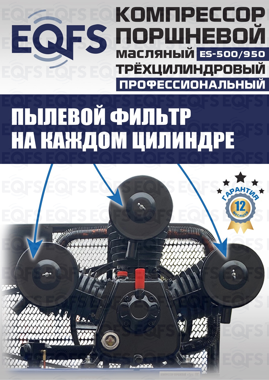 Компрессор воздушный, передвижной, поршневой, масляный, трёхцилиндровый. Быстро достигает нужного давления. Трёхпоршневая головка двигателя уменьшает износ деталей и увеличивает срок службы. Ремённый привод — предохранят мотор от поломки. Идеальное решение для шиномонтажа, автосервиса, строительства, покраски, промышленности. Давление 8 Атм. Производительность 950 л/мин. Мощность 7,45 кВт. Напряжение 380В. Ёмкость ресивера 500 л. Гарантия 12 месяцев.