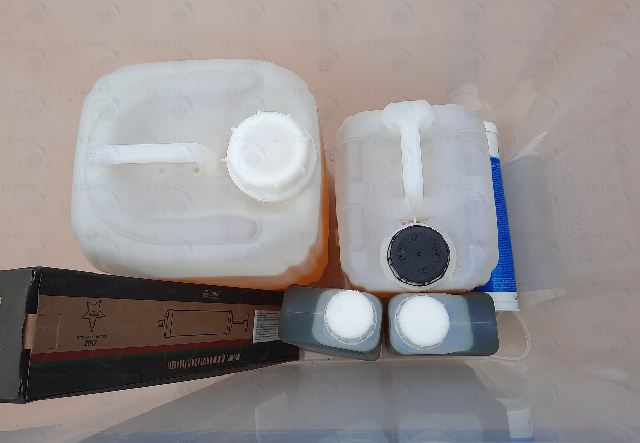 Комплект для ТО грузового шиномонтажного станка включает: Противоизносное бесцинковое гидравлическое масло в гидростанцию. Емкость 15л. + Смазка пластичная для цепи,400гр. С высокими эксплуатационными показателями на основе литиево-кальциевого мыла с содержанием противозадирных присадок (EP-присадок) и твердого наполнителя (дисульфида молибдена). Для смазывания узлов трения в грузовых шиномонтажных станках (направляющие + тавотница) + Масло в редуктор Емкость: 2 л. Трансмиссионное масло для применения в узлах трансмиссии, подверженных высоким нагрузкам (главная передача, ведущие мосты), где требуется уровень эксплуатационных свойств API GL-5. Масла эффективно защищают детали гипоидных передач от износа и задира + шприц для масла пневматический. Объем бака – 0,5л.