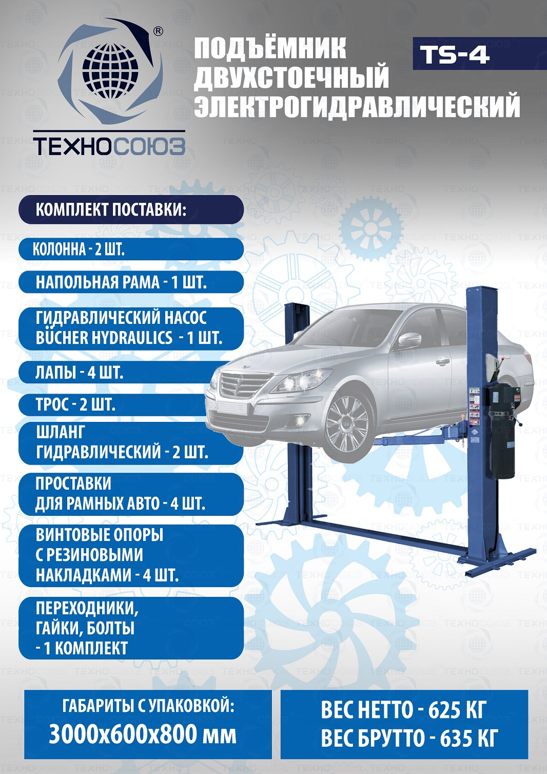 Автомобильные подъемники Т4 используется для подъема легковых автомобилей.
