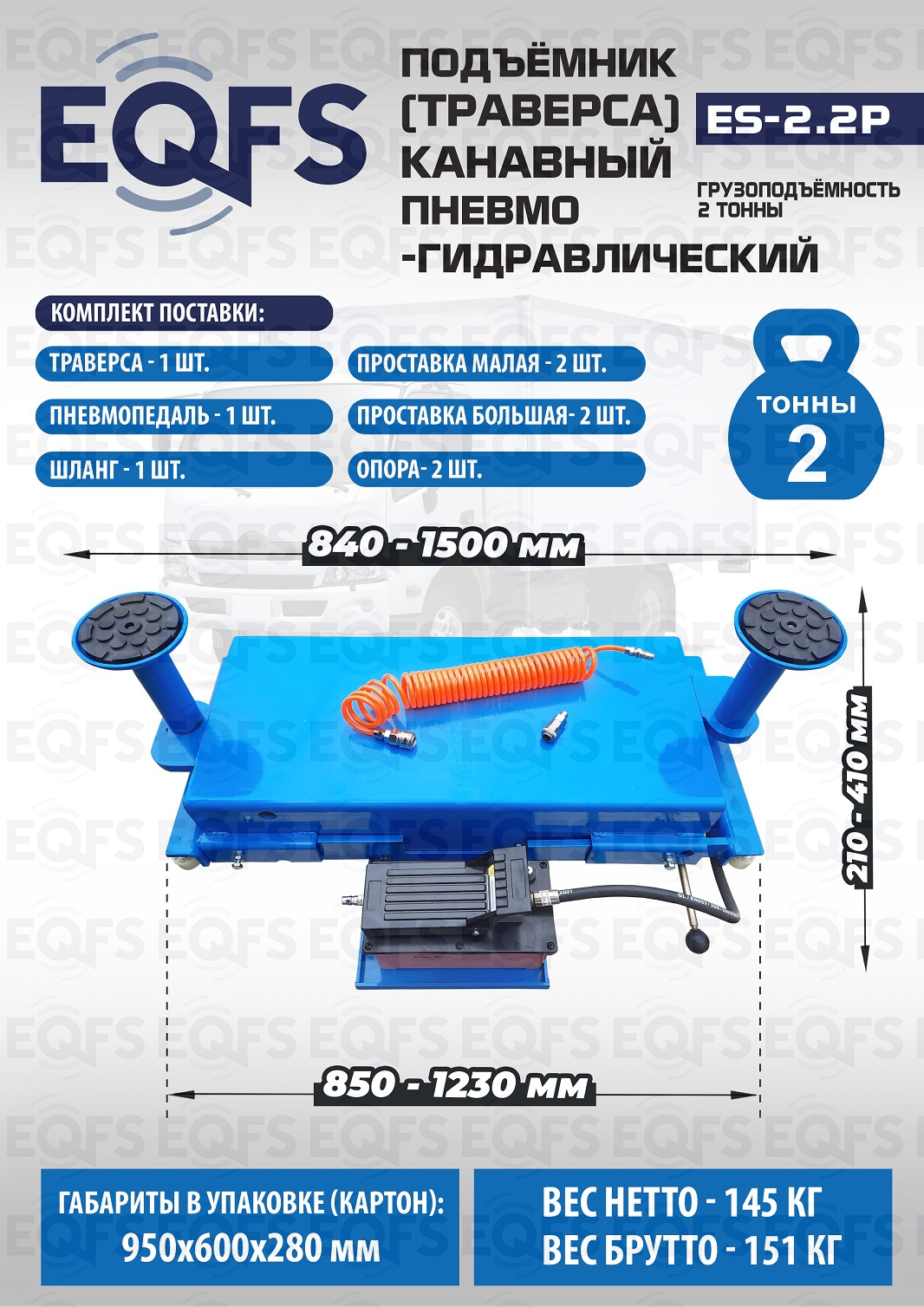 Подъемник канавный пневмогидравлический г/п 2т, ES2.2P