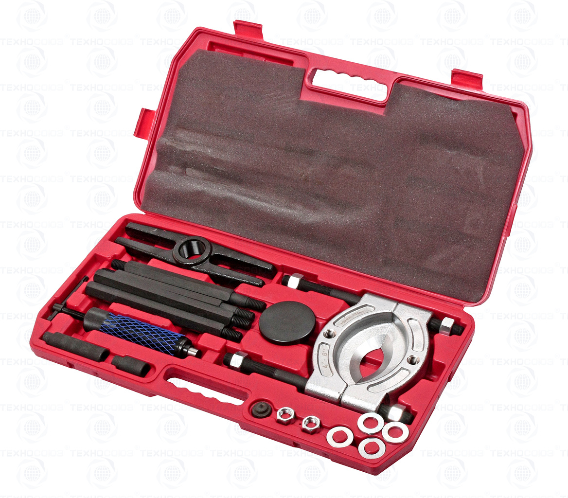 • Демонтирует подшипник с помощью Н-образной балки и болтов.