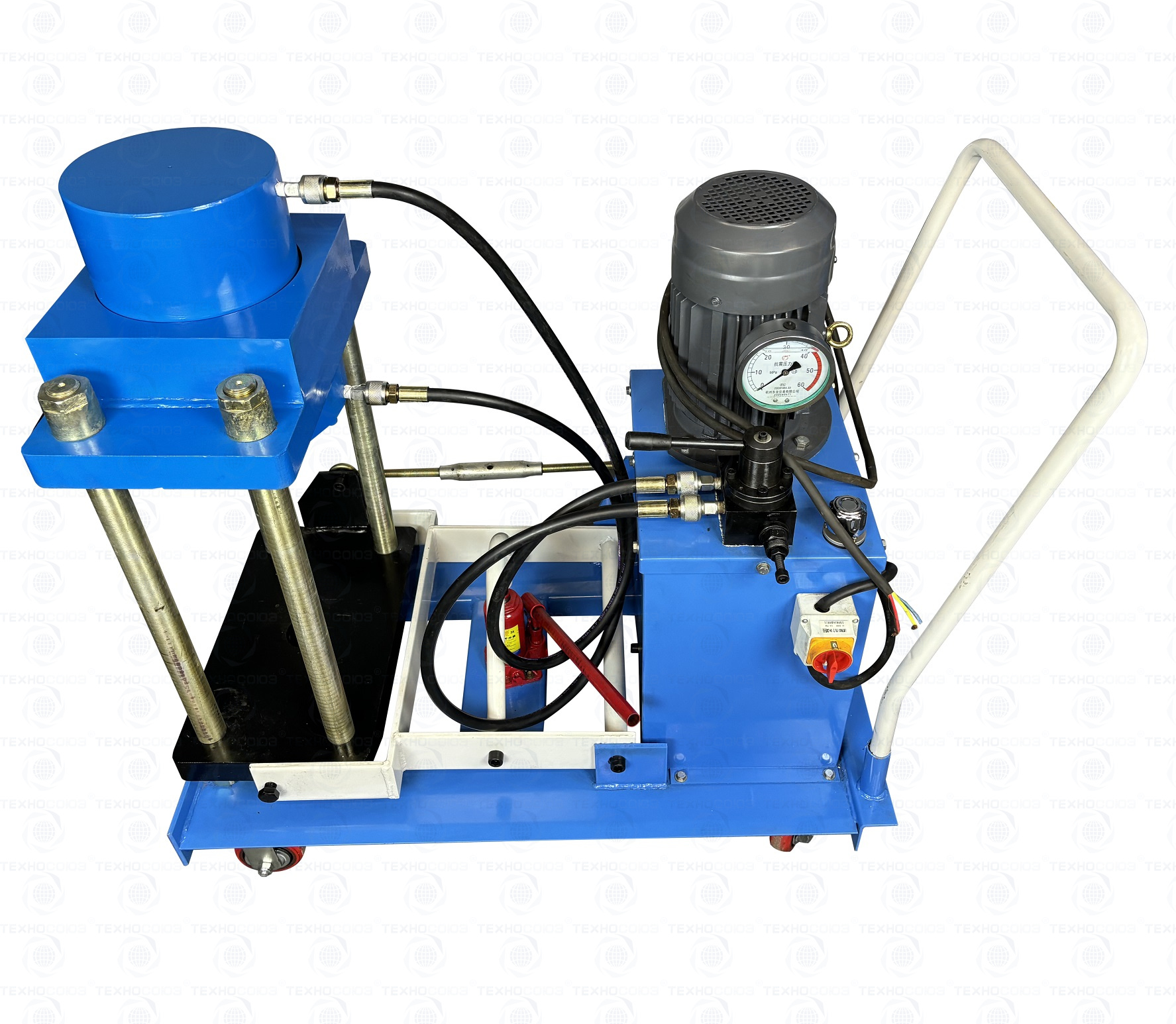 Мобильный. Позволяет работать под разными углами1 человеку. Сокращает время ремонта. Для выпрессовки шкворней из поворотной цапфы. Для коммерческих и грузовых авто отечественного и импортного производства: MAN, MERSEDES, SCANIA, VOLVO, Корейские и Китайские автомобили, а также трактора, погрузчики, спецтехника. Электрогидравлический привод. Рабочее окно 400x320 мм. Усилие 150 тонн.