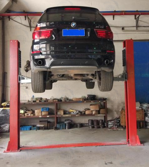 Колонны подъемника оснащены стопорным механизмом, предотвращающим падение автомобиля.