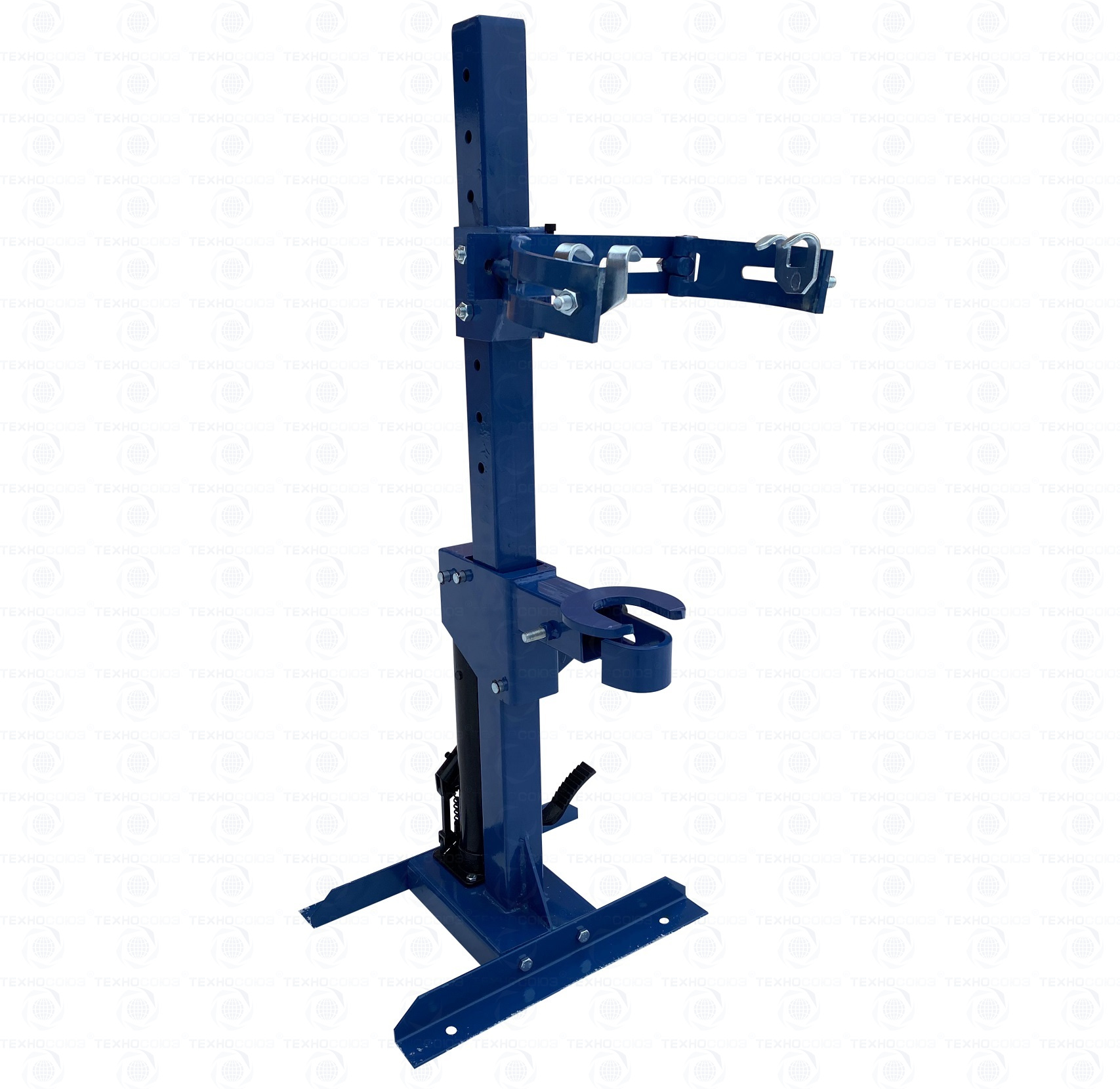 Экономит время. Облегчает монтаж / демонтаж особо прочных пружин со стойки. Профессиональная. Напольная. Гидравлическая. Ножной привод подъема и опускания. Для стяжки пружин легковых автомобилей. Усилие 1000 кг. Длина пружины 210-550 мм. Диаметр пружины 102-380 мм. Ход - 340 мм.