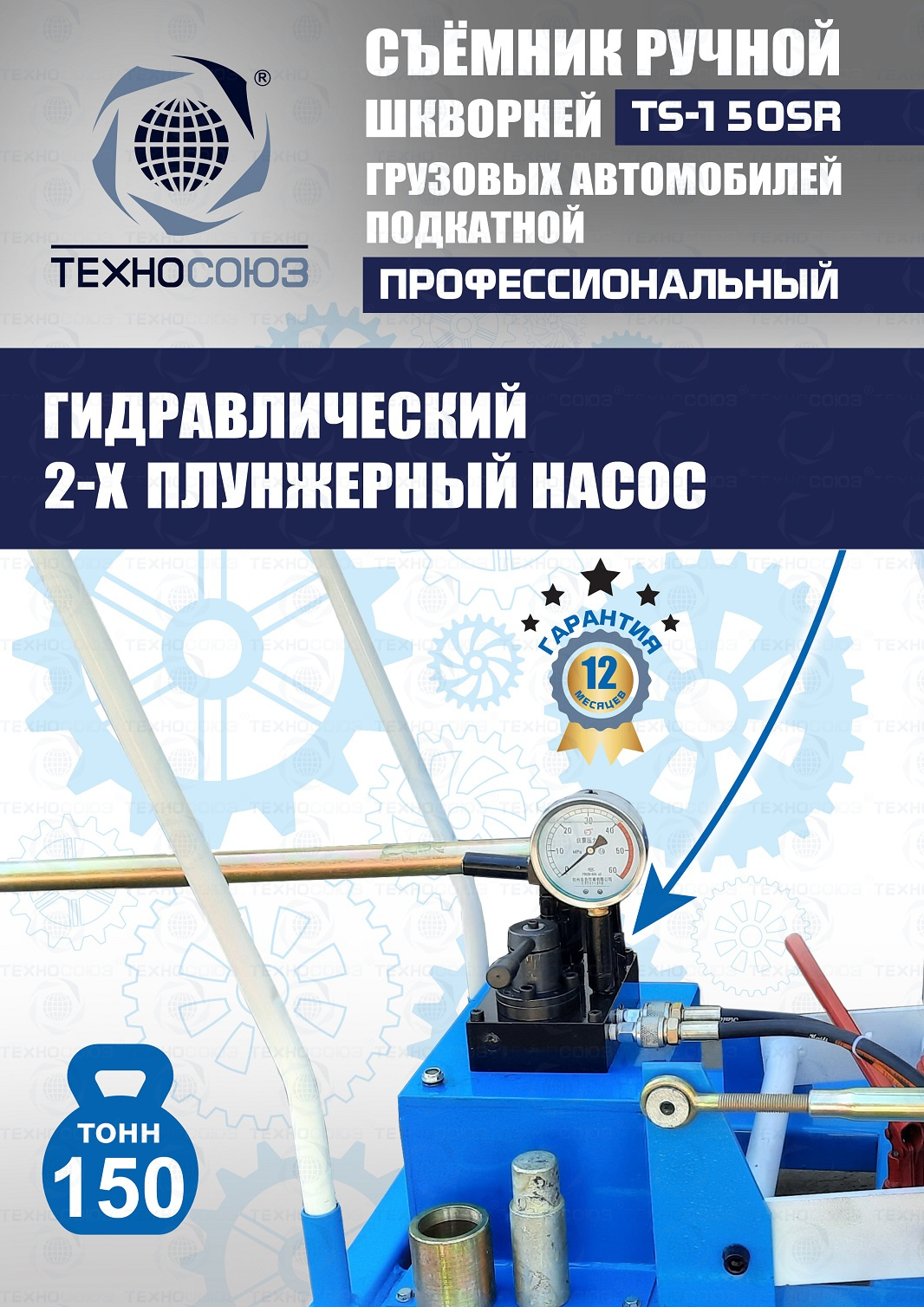 Позволяет работать под разными углами 1 человеку. Сокращает время ремонта. Мобильный. Для выпрессовки шкворней из поворотной цапфы. Для коммерческих и грузовых авто отечественного и импортного производства: MAN, MERCEDES, SCANIA, VOLVO, Корейские и Китайские автомобили, а также трактора, погрузчики, спецтехника. Ручной гидравлический привод. Рабочее окно 400x320 мм. Усилие 150 тонн. Можно использовать при выездных работах. Применяется для выпрессовки подшипников, валов, втулок, сайлентблоков.